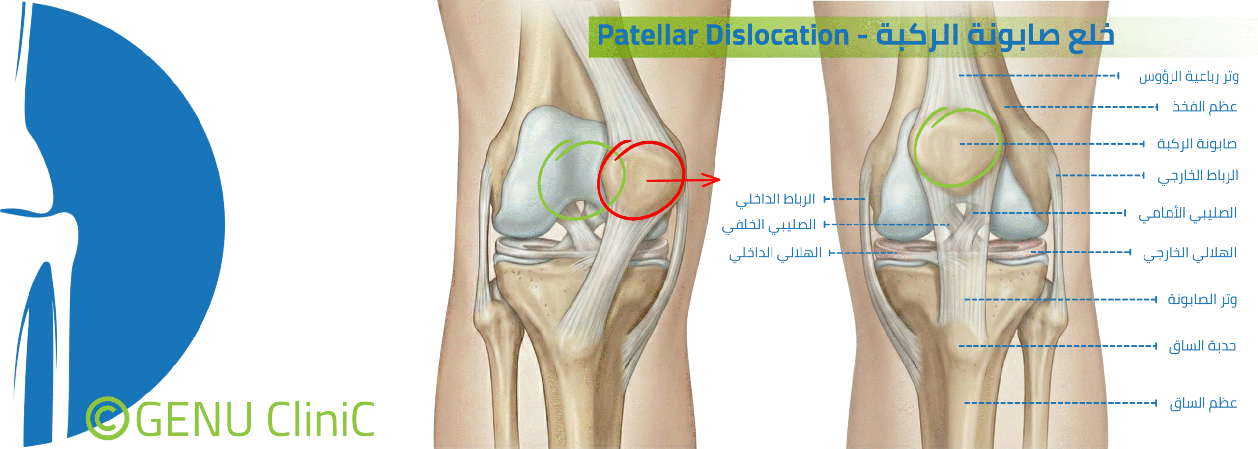 • قد يشمل إعادة بناء الرباط (MPFL Reconstruction) باستخدام وتر مأخوذ من الجسم